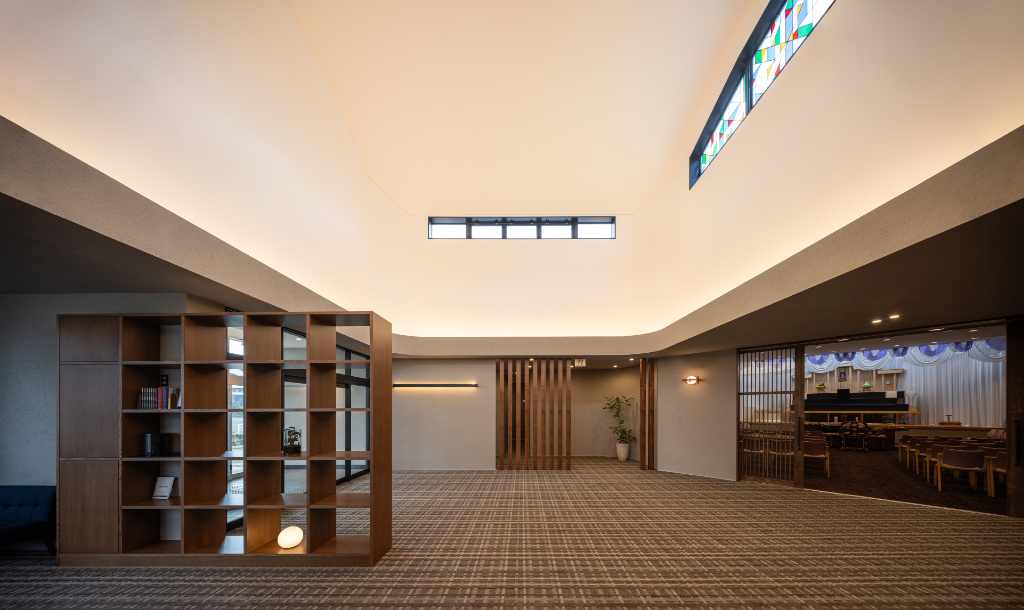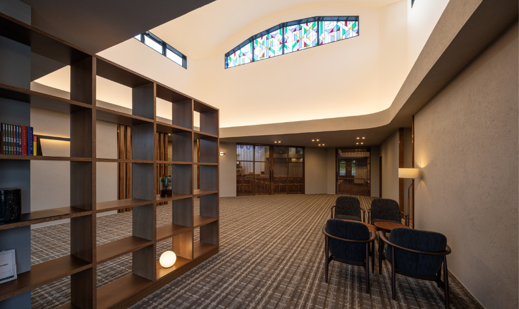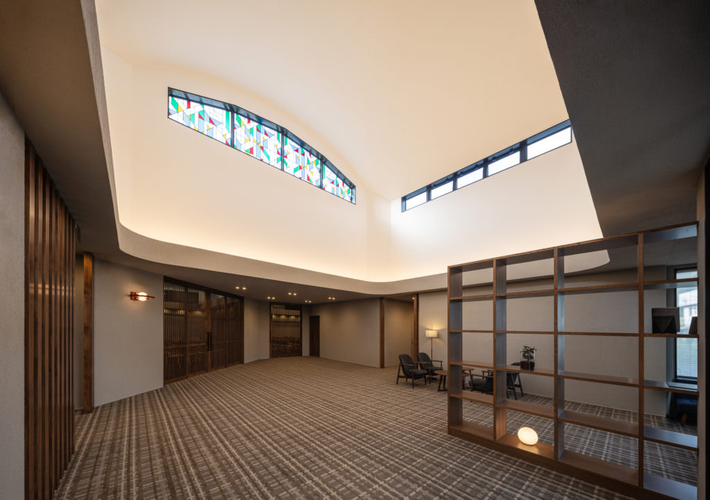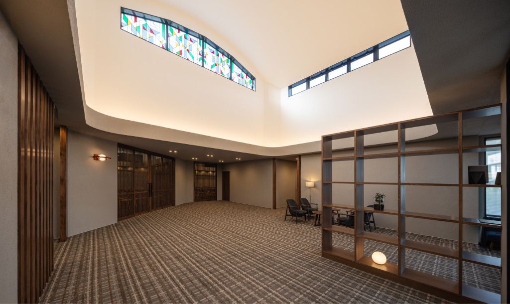 斎場への空間の繋がり、トイレや親族控室への動線がスムーズになる事を意識してデザインさせていただきました。
